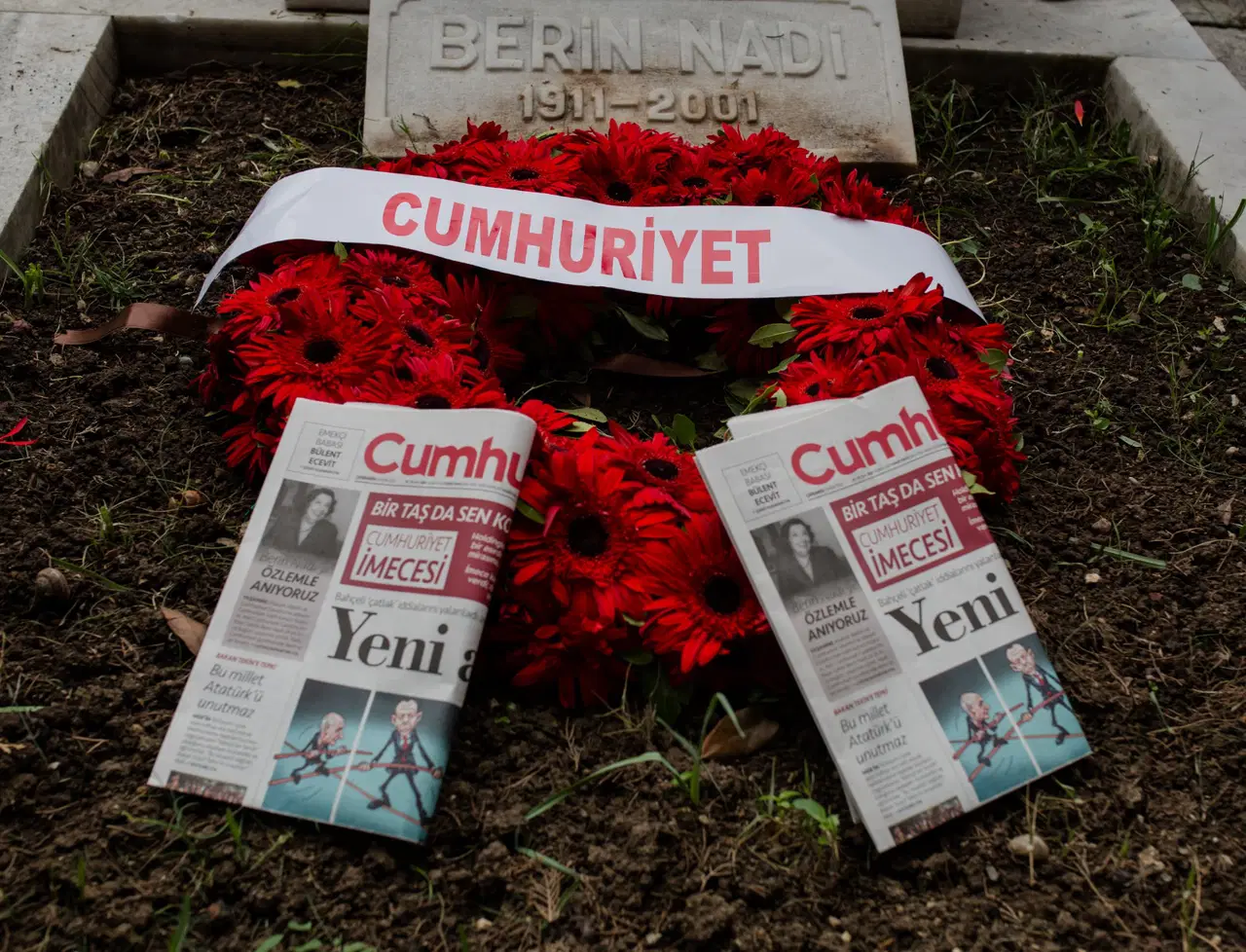 Törende hazır bulunan gazetemiz yazarı Arif Kızılyalın, “Ben, Berrin Nadi’ye yetişen şanslı kuşak çalışanlarındanım. Her zaman çalışanlara sevgi ve şefkatle yaklaşan, sevgili Şükran Soner ve Mine Esen’in de ifade ettiği gibi, kollarını kanatlarını gazetemizin üstüne geren bir karakterdi. Cumhuriyet’i ölümsüzlüğe taşıyan isim oldu” diyerek Berrin Nadi’yi ölümünün 24. yılında mezarı başında andı.