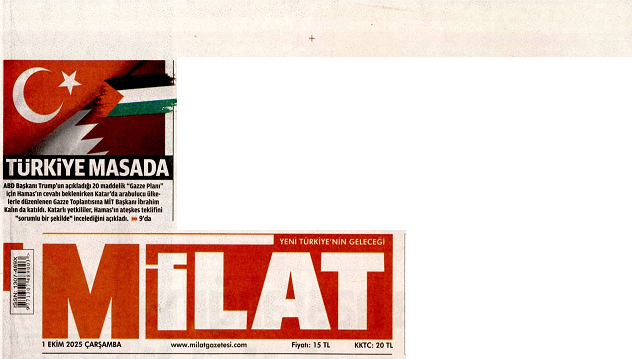 Milliyet gazetesi, “Gözler Hamas’ta” başlığının yanı sıra “Kalın, müzakere için Katar’da” ifadelerine yer verdi.