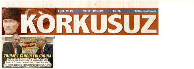 Korkusuz gazetesi, Cumhurbaşkanı Erdoğan’ın, “Trump’ı takdir ediyorum” sözlerini aktardı.