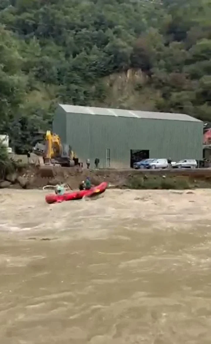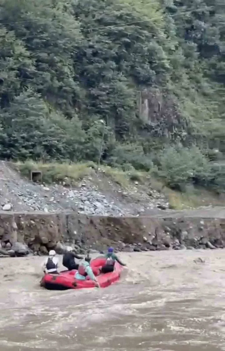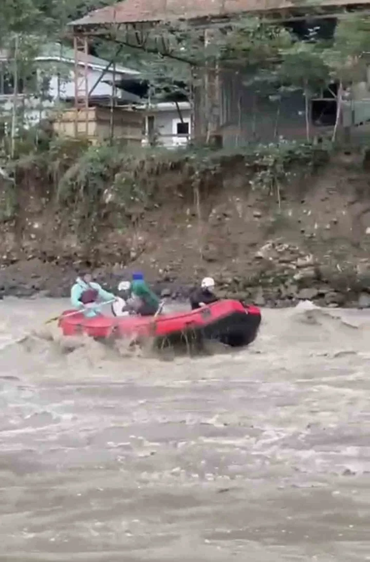 Rize’de selin ardından ekiplerin yol onarım çalışmaları sürerken, kentte debisi ve su seviyesi yükselen Fırtına Vadisi’nde rafting tutkunları da sele rağmen botla girdikleri derede adrenalin yaşadı.