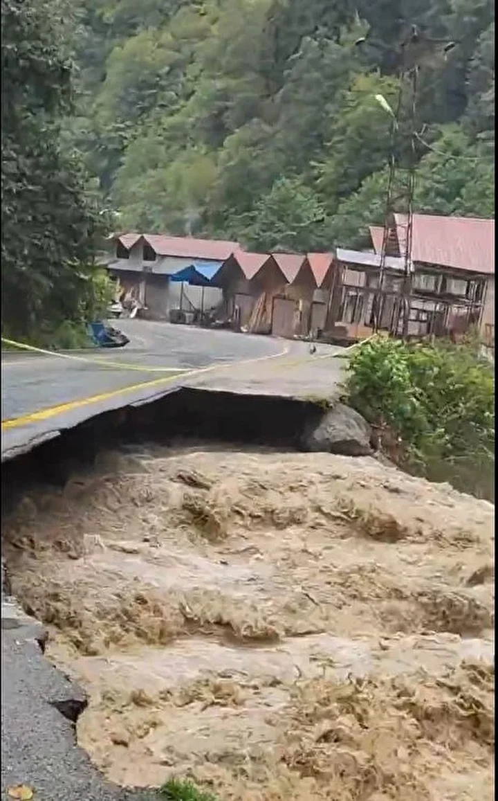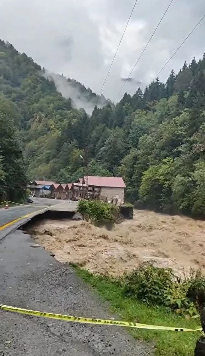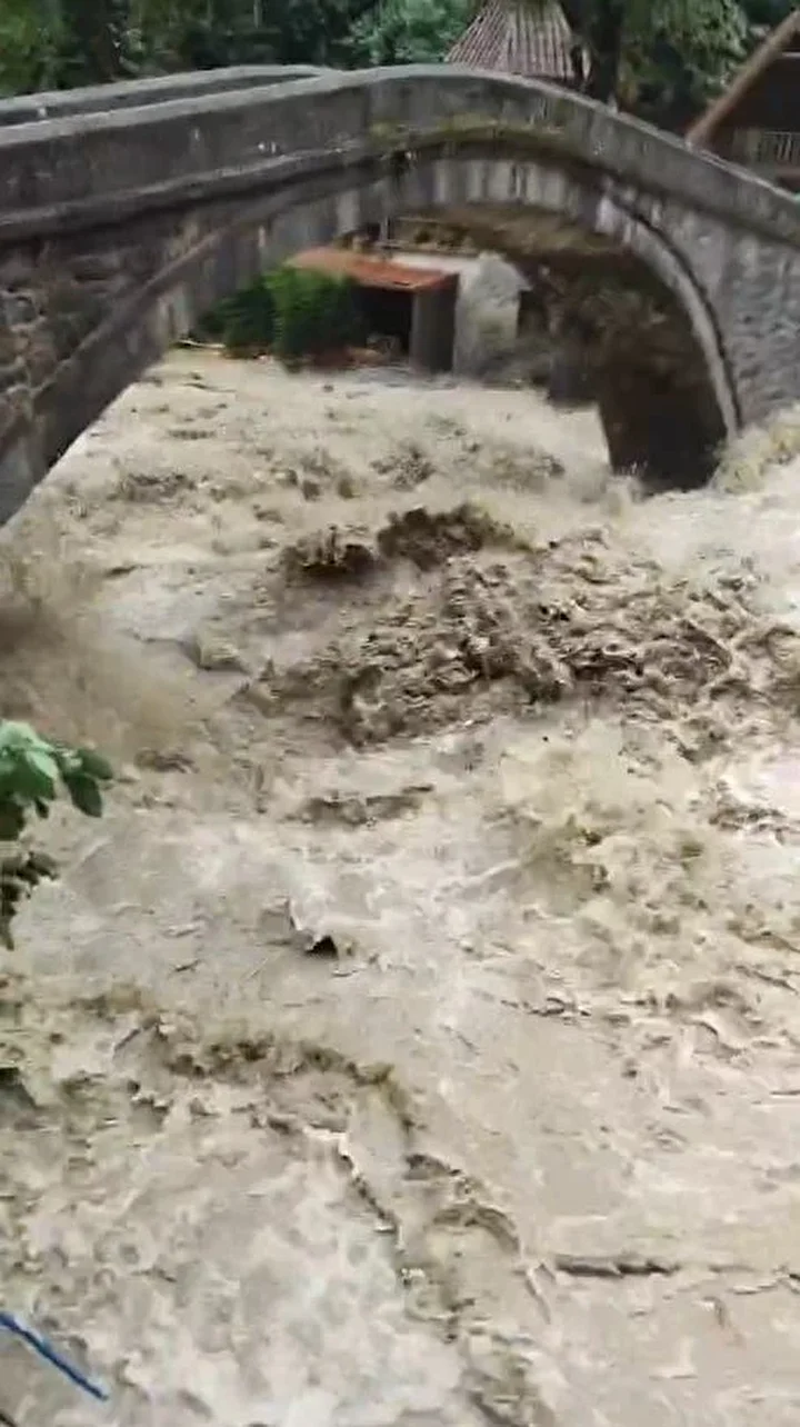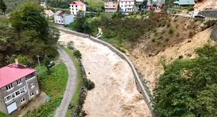 Görüntülerde çamurlu suyla dolan derelerde suların hızla Karadeniz’e doğru ilerlediği anlar yer aldı.