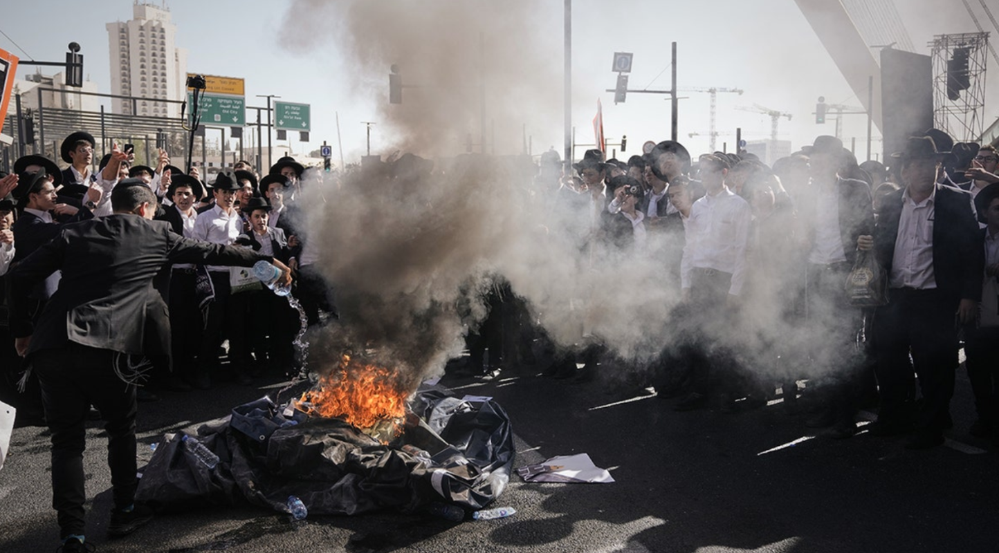 Perşembe günü, yüz binlerce ultra-Ortodoks Yahudi, İsrail’i protesto etmek amacıyla Kudüs girişini tamamen kapattı. Protestocular, yolları trafiğe kapatarak İsrail bayrağını yaktı.
